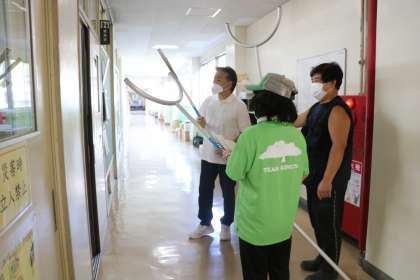有事のときは主事さんや、気が付いた先生たちがさすまたを持って不審者に直接対応します。