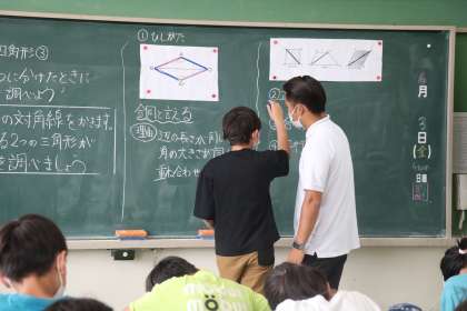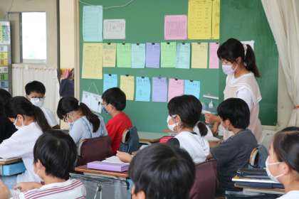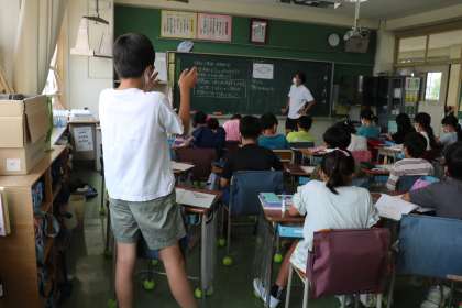 自分の考えをみんなに聞いてもらいます。先生にも聞いてもらいます。一生懸命考えている様子が、さすが!5年生です。