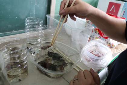 ヤゴがたくさん!!ヤゴのごはんタイムです。