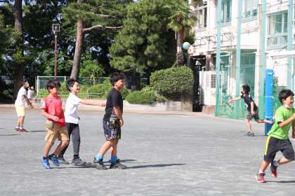 朝は気持ちのよい青空が見えていました。校庭で遊ぶ子がカマキリの赤ちゃんやバッタの赤ちゃんを見せてくれます。