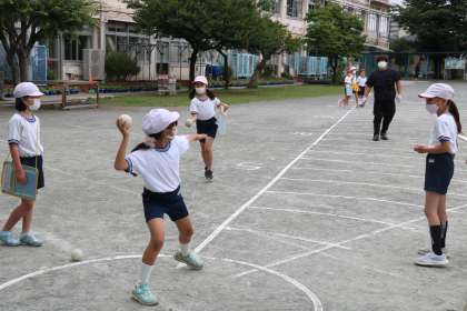 写真は、3年生のスポーツテストの様子です。今日と明日で順番に全学年がスポーツテストを行います。最初は3年生でした。どの子も自分のベストを出そうと一生懸命取り組んでいました。