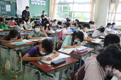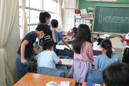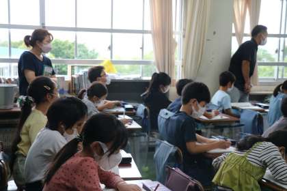 この時間、先生の勉強のために、他学年学級の先生も授業を見に来ていました。放課後、授業についてディスカッションをし、授業をした先生はもちろん参観した先生も互いに、学びが深まる時間をもつことでしょう。授業力向上のために、砧の先生たちは勉強熱心です。