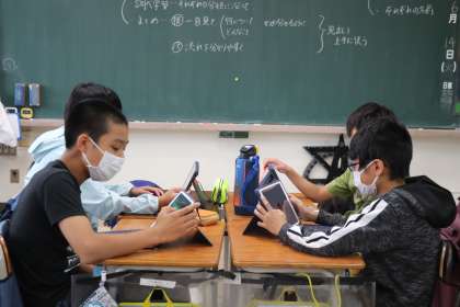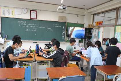 同じ課題ごとグループになって調べ、発表の準備をしていました。