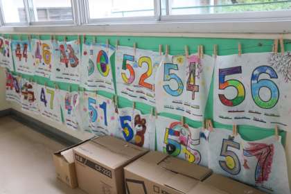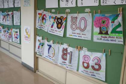 顔合わせが終わり、職員室前の所定の場所に戻ってきた班旗です。今年1年の活動が楽しみです。