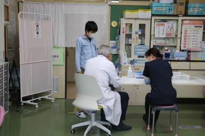 問診の最後「元気に行っていらっしゃい!」という校医先生の言葉に、「はい!!ありがとうございます。」と元気に返事をする5年生です。