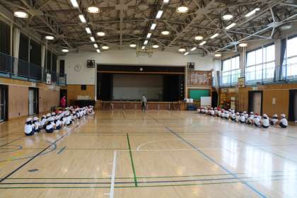 4年生のプール開きの様子です。今日は雨なのでプールではできませんでしたが、体育館をプールに見立てて行われました。副校長先生からプール学習について3つの「あ」、「安心しない」「あわてない」「あなどらない」についてのお話の後、クラスの代表児童からの水泳学習のめあて発表がありました。最後は、先生から水泳学習のルールや安全についてのお話がありました。今年も安全で楽しい水泳学習にしたいですね。