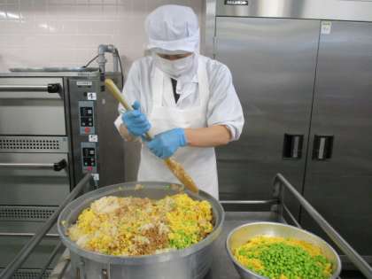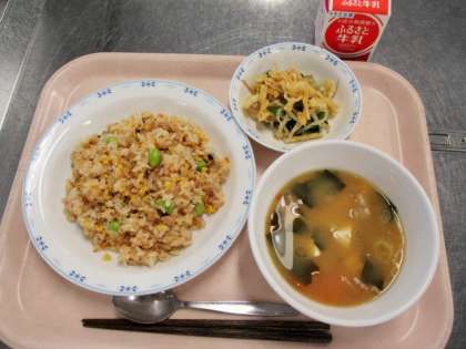 油揚げをカリカリになるまで焼いておひたしの上にかけました。味付けはみそを使ったドレッシングです。油揚げの食感がおいしい野菜のあえものです。