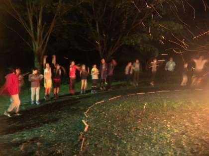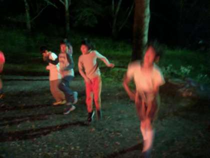 食事の後はキャンプファイヤーです。係が一生懸命準備、練習しました。火の神も川場の山から来てくれて盛り上げてくれました。みんなで火を囲みながらたっぷり踊りました。キャンプファイヤー場から宿舎に戻る道は真っ暗で川の水の音しか聞こえません。東京では味わえない大自然の中ならではの楽しいひとときでした。