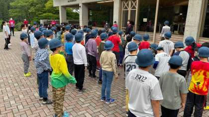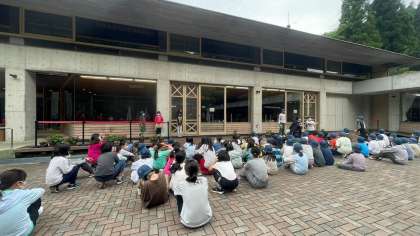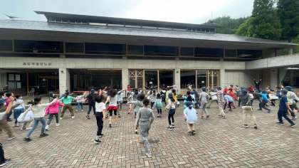 おはようございます。今日の天気は曇りのち晴れ、最高気温28度の予報です。まずは朝会、体操をしました。朝の健康観察、全児童の健康カードをチェックしながら保健係さんに班の仲間の様子を確認しました。朝早く起きてしまった部屋もあったようですが、もう一度布団に入り起床時刻まで静かに過ごしていたそうです。全員元気です。