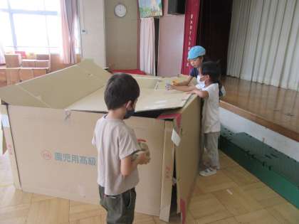 次の日には、段ボールを使ってプラネタリウムを作って遊ぶ姿も見られました。