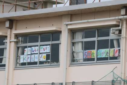 先週の金曜日5年生は川場移動教室から帰ってきました。bandにご登録いただいた5年生保護者の皆様には、2日間の様子を動画で配信いたしました。最後に学校に到着し、帰校式の様子がありました。ちょうど下校時間だったので、他学年の子たちが幼稚園門のところで「おかえり」「おかえりなさい」「楽しかった?」などと声ををかけてくれる姿がありました。引率の先生に飛びつく子もいました。校庭に入ると、たくさんの保護者や先生方の出迎え、6年生の窓にはメッセージもありました。このような温かい出迎えで疲れもふっとんだ気がしました。一回り成長した5年生の、これからの活躍が楽しみです。