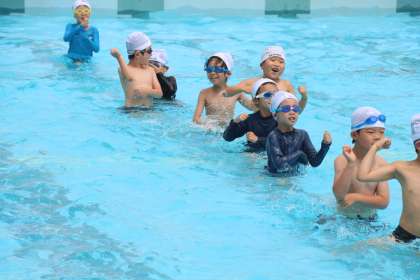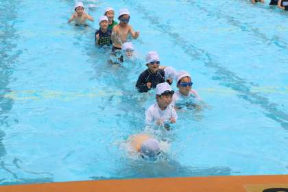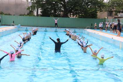 運動会で踊ったダンスを、水慣れのためにプールの中でやりました。