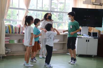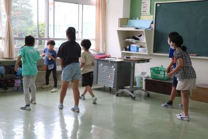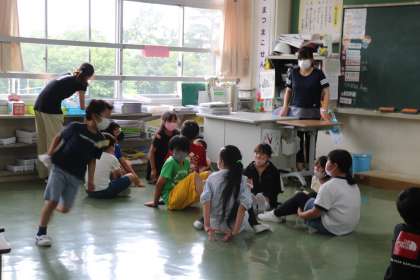 火曜日の昼休みは、なかよし班遊びです。室内と校庭に分かれ、「ハンカチ落とし」や「だるまさんが転んだ」など工夫して、遊びを楽しんでいます。