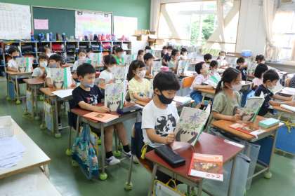1年生の様子です。国語の教科書をしっかりもって、音読をしています。昨日でひらがなを全文字学習しました。ひらがなマンション(ひらがな表のことです)が完成したと、子どもたちは大喜びで知らせてくれました。