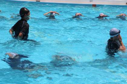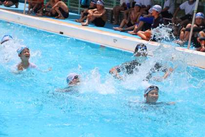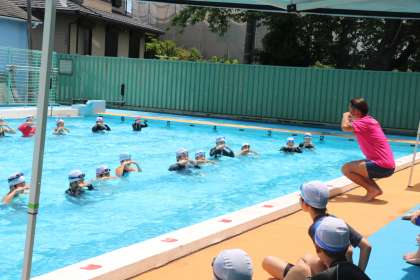 今年度の水泳学習は、学年ごとに実施します。学年ごとだと2時間たっぷり時間をかけて取り組めます。感染症対策のため、水の中でも十分距離を取り、向かい合わせになる活動は避けます。