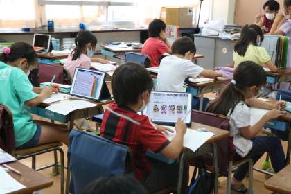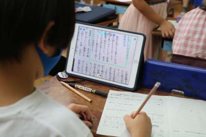 興味をもった仕事について調べ、見つけた仕事の工夫を報告する文章を書く学習です。より相手に伝わる報告分を書くにはどのような構成がいいか、真剣に考えたり、先生に相談に乗ってもらったりしています。