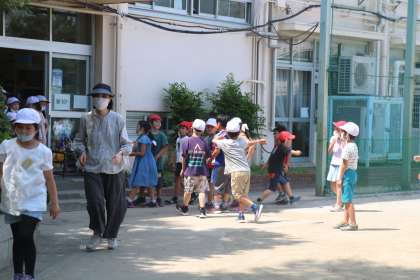 ロング昼休みの最中も先生たちは「ちょっと休憩」「マスクとろうね」「お水飲んで」「少し日影で休憩しよう」と声をかけながら、子どもたちの様子を見ながら遊んでいます。この後熱中症指数が高くなってきたので、6時間目のクラブ活動、外での活動は禁止にしました。