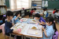 2年生の水泳学習の様子です。水分補給もこまめにします。