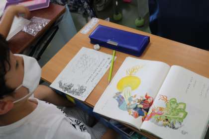 「だからおじいさんの気持ちを想像して書いているの。こんなに書いたよ。」