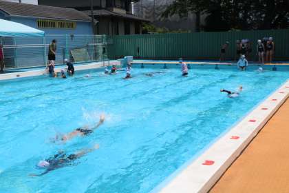 3年生水泳学習の様子です。なるべく陸にいる時間を短時間にする指導の工夫をしながら実施しました。