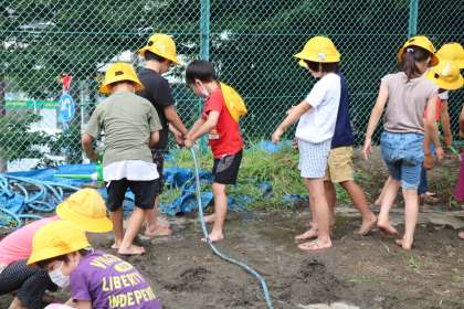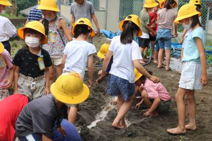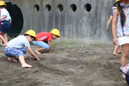 1年生生活科「なつだ!とびだそう!」の学習です。砂遊びの様子です。