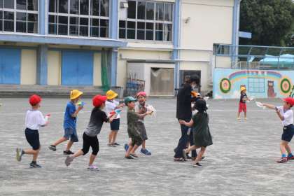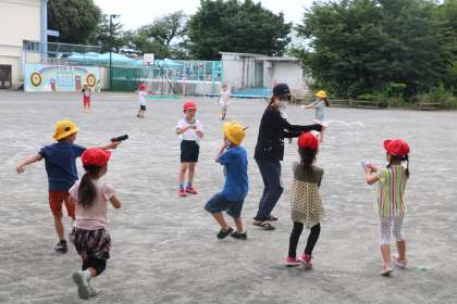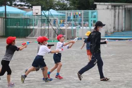 先生も水遊びに参加です。