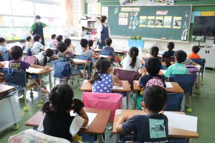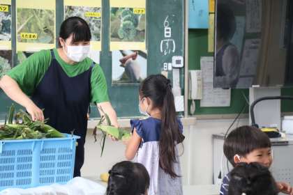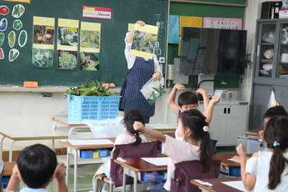 1年生生活科の様子です。夏の野菜を知り、何の野菜の花かクイズで考えました。花の写真にもヒントが隠れています。