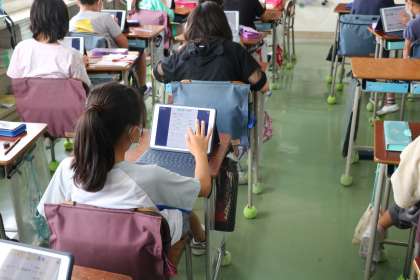 4年生の算数の授業です。まとめの練習問題をロイロノートを使って解いていました。どの子も集中して取り組んでいました。