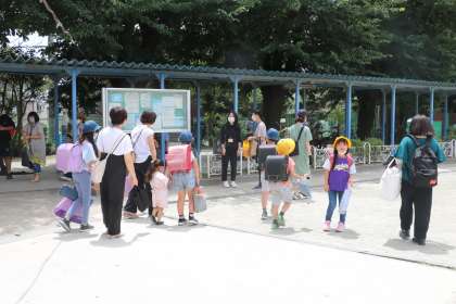 静かに、落ち着いて行動できる子供たちです。全員の安否を確認したら、引き渡しが始まります。