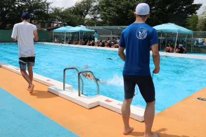 声を出して応援できないので、プールサイドからは自然と拍手が起こります。何秒以内に泳ぐ・・・というタイムへの挑戦をしている友だちへの温かい気持ちが伝わります。