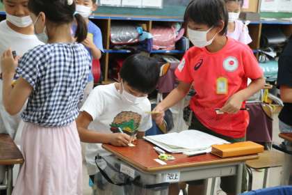 3年生国語「夏のくらし」の様子です。生活の中で夏を感じるものについて文章を書き、友だちと交流しています。夏を感じるものは、子どもによって様々です。「夏のフルーツと言えば冷たいパイナップルが好きです。いつも朝食をとる時間のないお父さんでも、パイナップルなら食べてくれるから。・・・」子どもたちの思いの詰まった文章を、友だちもきちんと評価してくれます。