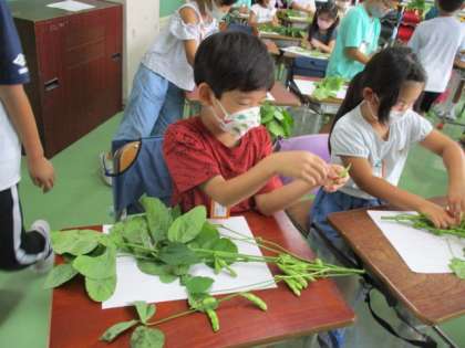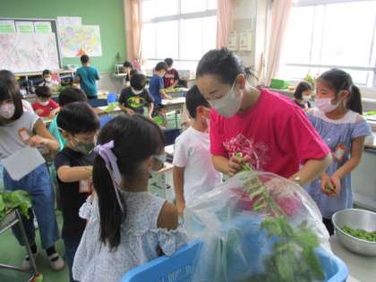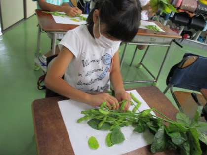 「食べられるところこんな少しなのに、葉っぱや茎がたくさんだね」と子どもたちはびっくりしていました。