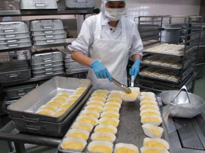 卵たっぷりの蒸しパン生地に、チーズとコーンが入っています。