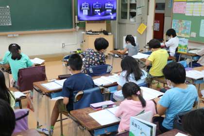 3年生の算数の授業です。まとめの練習問題を解いていました。どの子も集中して取り組んでいました。1学期も残り2日となりました。