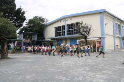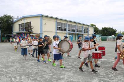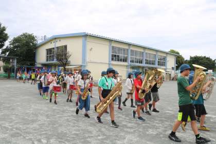 砧っ子夏祭りのパレードに向けて最終練習をする6年生の様子です。