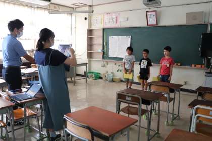 児童代表の言葉は3年生でした。1学期を振り返り、夏休み・2学期に頑張ることをしっかり発表することができました。