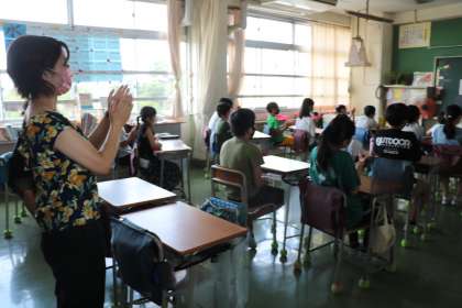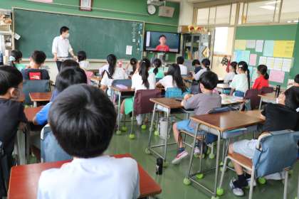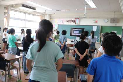 代表児童の発表の後、拍手が送られました。テレビに向かっての拍手ですが、どのクラスからも聞こえます。そんな砧っ子の温かい姿は誇りに思います。