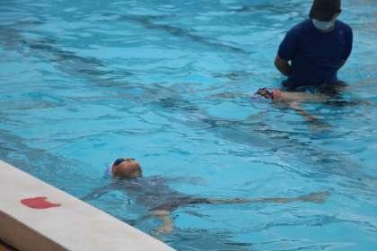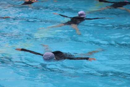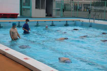 子どもたちは、「水の中はあったかい!」と嬉しそうです。