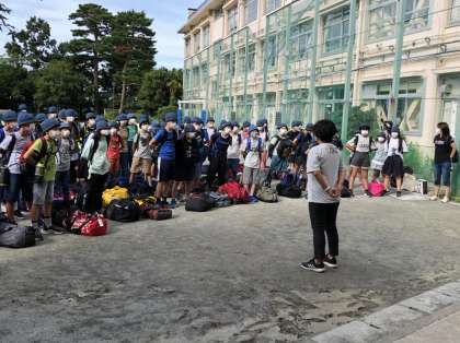今日は、待ちに待った6年生の日光林間学園出発式です。私は「自覚」「仲間」「感謝」を大切にしてほしいという話をしました。日光の自然や歴史を、直接肌で感じながら心と体を鍛え、学年テーマでもあります「自主・自立」の生活態度を身につけてきます。