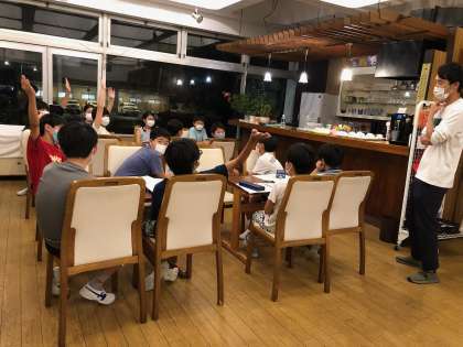 隣では室長会議をしています。今日1日のことを振り返り、明日につなげます。明日も元気に頑張りましょう!