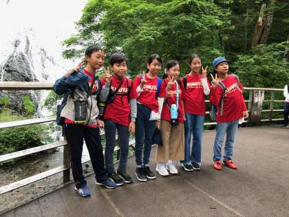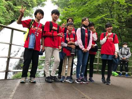湯の湖や湯滝で写真を撮り、ハイキングスタートです。