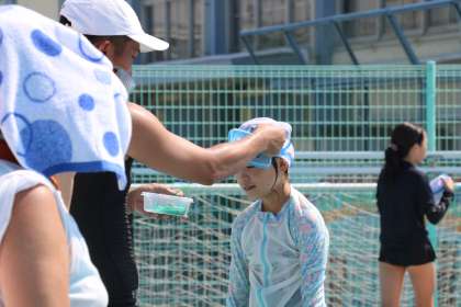 友だちも一緒に目標タイムをクリアできて、思わずハイタッチ。