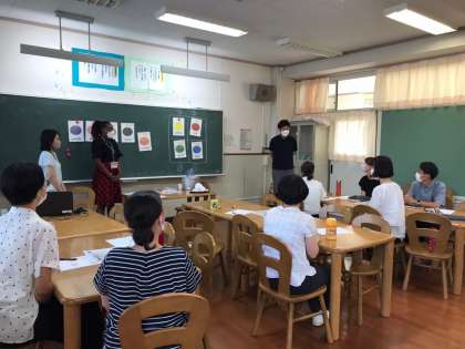 子どもたちが理解しやすく「できた!」「わかった!」と、達成感がもてるアクティビティをたくさん勉強しました。将来言語習得のため、小学校では先生が主体となってみんなで触れる、繰り返し練習する。そして子どもが主体となってアウトプットする…ことが大切です。二学期からの授業に生かしていきます。