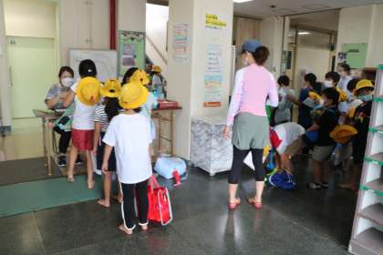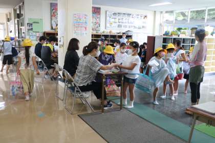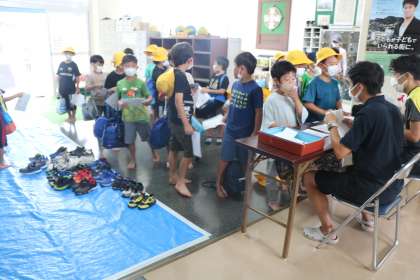 今日の水泳教室1回目は2年生です。元気なあいさつが玄関に響いていました。
