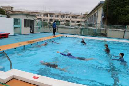 クロールや平泳ぎの泳法も、先生たちがしっかりみてくれています。