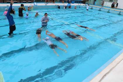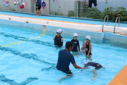 感染症対策で学年ごとの実施にしたため、実施回数が多くは取れませんでしたが、よくがんばりました。棒首位の白いマジックテープの部分に進級バッジくを付けてもらいます。
