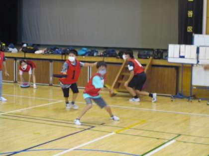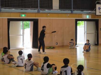身体を動かして遊ぼうでは、ドッヂビーで遊びました。投げ方や取り方を教わり、最後はゲーム形式で身体を動かしました。みなさん上手に投げることが出来ていました。
