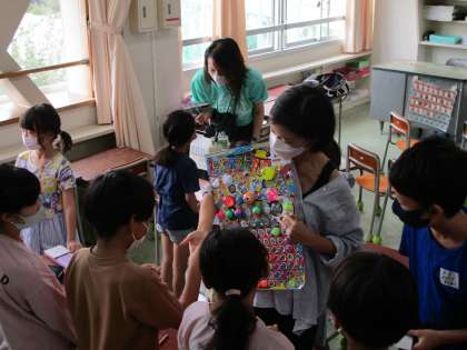 「英語であそぼう」では英語の本の読み聞かせを聞いたり、英語ビンゴゲームをしたりしました。ビンゴゲームではお楽しみのプレゼントもあり、大盛り上がり。「とっても楽しかったです!自分でも英語の本を読んでみたいです!」と感想を述べる子もいました。