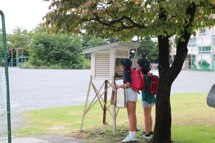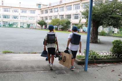 今日も、少し肌寒いくらいの朝でしたが、荷物を抱え汗をかきながら登校する子供たちです。