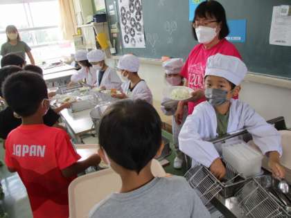 今日から2学期の給食が始まりました。初日の給食はみなさんが元気が出るように人気のカレーライスにしました。朝から献立表を見て、こどもたちは楽しみにしてくれていました。2学期も、安心安全でおいしい給食を作っていきますので、どうぞよろしくお願いいたします。